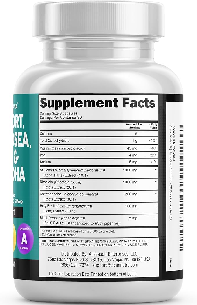 - Advanced St Johns Wort Capsules & Rhodiola Supplement for Women and Men - Our product takes St. John's Wort and Rhodiola Herb and combines them with Ashwagandha Supplements, Holy Basil Capsules, and Black Pepper and the results are amazing. Normal St John's Wort is found as St Johns Wort Tea, St Johns Wort Gummies or St Johns Wort 300 mg. However, Clean Nutra has officially created an even more potent all in one mood support supplement.