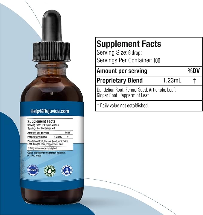 Rejuvica Health BloatX- Advanced Bloating Support Supplement - Liquid Delivery for Better Absorption - Fennel, Dandelion, Artichoke, Ginger & More!
