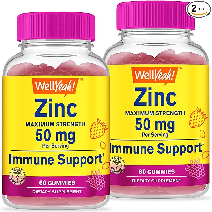 Zinc Gummies 50 mg (2 Pack) - Supports Healthy Immune Function and Antioxidant Health - Natural Berry Flavor - Gluten-Free, GMO-Free - Chewable Gummy Dietary Supplement - 60 Gummies