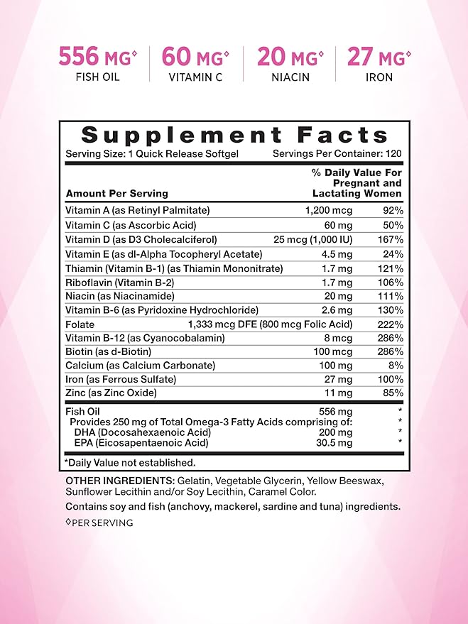 - One per day: One softgel per day delivers nutrients for mother and baby