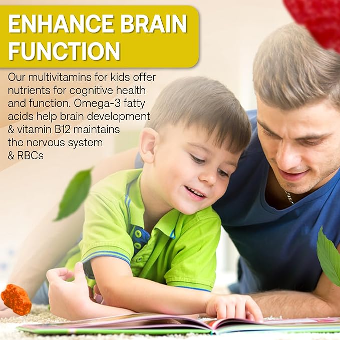 - Enhance Brain Function - Nurture Their Young Minds for Bright Futures! Our toddler multivitamins for kids offer nutrients for cognitive health and function. Omega-3 fatty acids help brain development, & vitamin B12 maintains the nervous system & RBCs