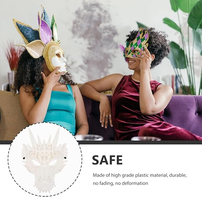 - PACKAGE INCLUDES --- You'll get 3 White Dragon Shaped Masks, the creative animal design makes it a great prop for fancy dress parties, helping you create special costume looks that you can also share with family or friends for a fun role play together!