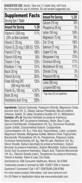 - Multimineral multivitamins for men 50 plus that help support immune health, bone health and muscle function with vitamin D (1)