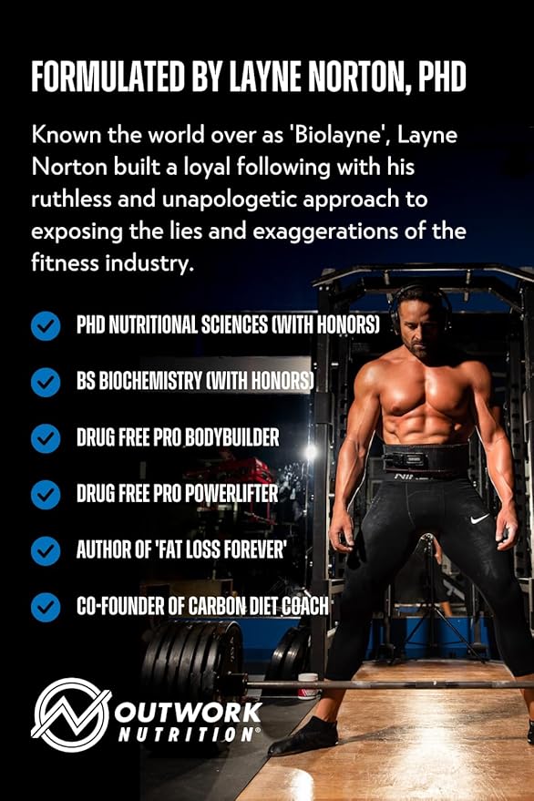 - Founded By Lane Norton, Ph.D. : Renowned as 'BioLayne', Layne Norton is a respected figure in the fitness industry, known for his commitment to evidence-based practices; Outwork Nutrition's pre-workout and workout recovery supplements were created under his guidance to provide science-based supplements for individuals dedicated to rigorous training and mindful nutrition