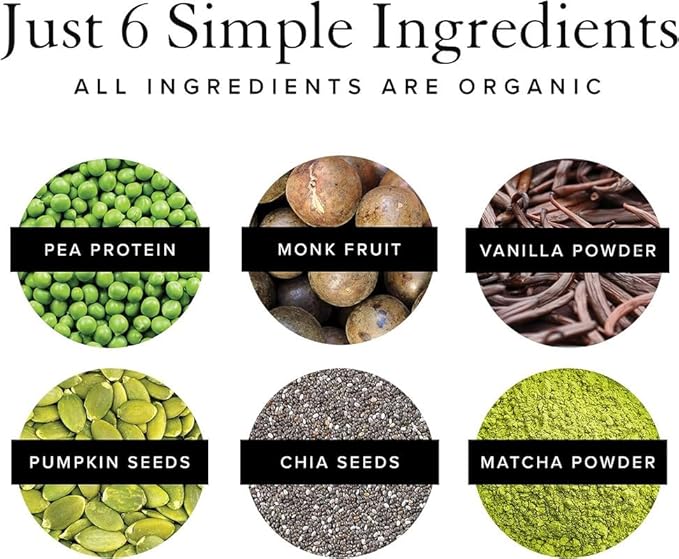 - Certified USDA Organic: Trust in the integrity of our plant-based vegan protein powder, certified USDA Organic, non-GMO, and vegan-friendly. Our straightforward label and simple ingredients ensure transparency and quality. Protein sourced from all organic pea, pumpkin seed, and chia seed.