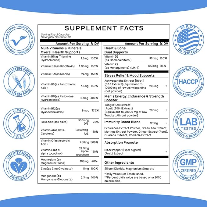 - Product Benefits : 24-in-1 Ashwagandha Tongkat ali supplements multivitamin