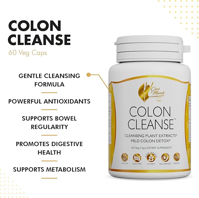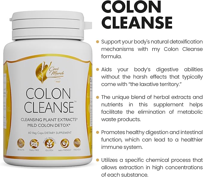 Coco March Colon Cleanse - Dietary Supplement, Cleansing Plant Extracts, Mild Colon Cleanse - Gluten Free, Dairy Free, Soy Free, Keto Friendly, Paleo Friendly, 60 Veg Caps - 15 Servings