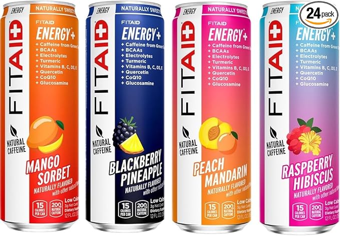 LIFEAID FITAID Energy Drink, 200mg Natural Caffeine, Keto, 15 Calories, Variety Pack, BCAAs, Quercetin, Electrolytes, Omega-3s, Paleo, Vegan & Gluten-Free, 12-oz. cans (Pack of 24)