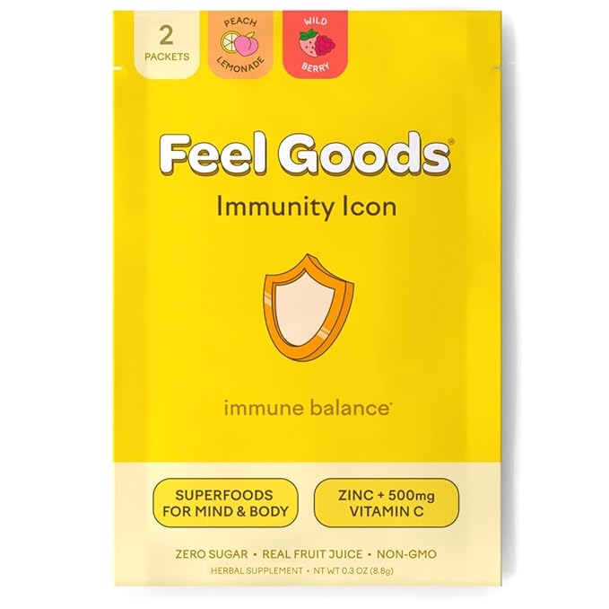 Feel Goods Immunity Icon, Zero Sugar, Vitamin C, A, B, D, E & Zinc, Organic Elderberry, Ashwagandha, Drink Mix Powder, Vegan, Non GMO, Caffeine & Gluten Free | Flavor Sampler, 2 Count