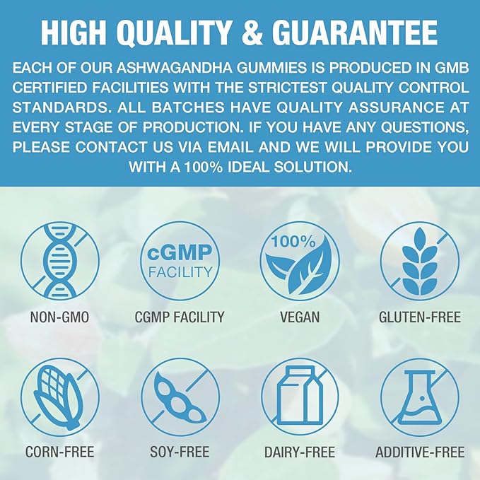 - QUALITY ASSURANCE: Our Premium Ashwagandha gummies undergo rigorous third-party testing to ensure superior quality. Your satisfaction is our pursuit, if you have any questions or need further assistance, please feel free to contact us via email.