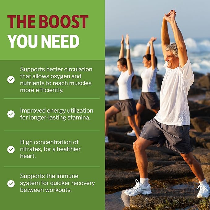 - Support Healthy Circulation: Red spinach extract provides high concentration of nitrates, supporting optimal cardiovascular health.