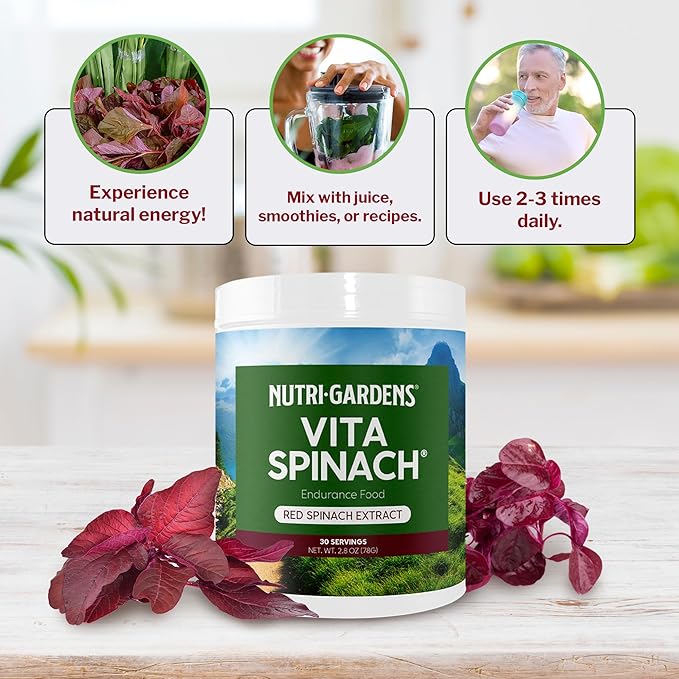 - Clean and Pure Ingredients: Crafted with care, Vita Spinach contains one ingredient only: pure red spinach extract; no unwanted additives, artificial flavors or sweeteners.