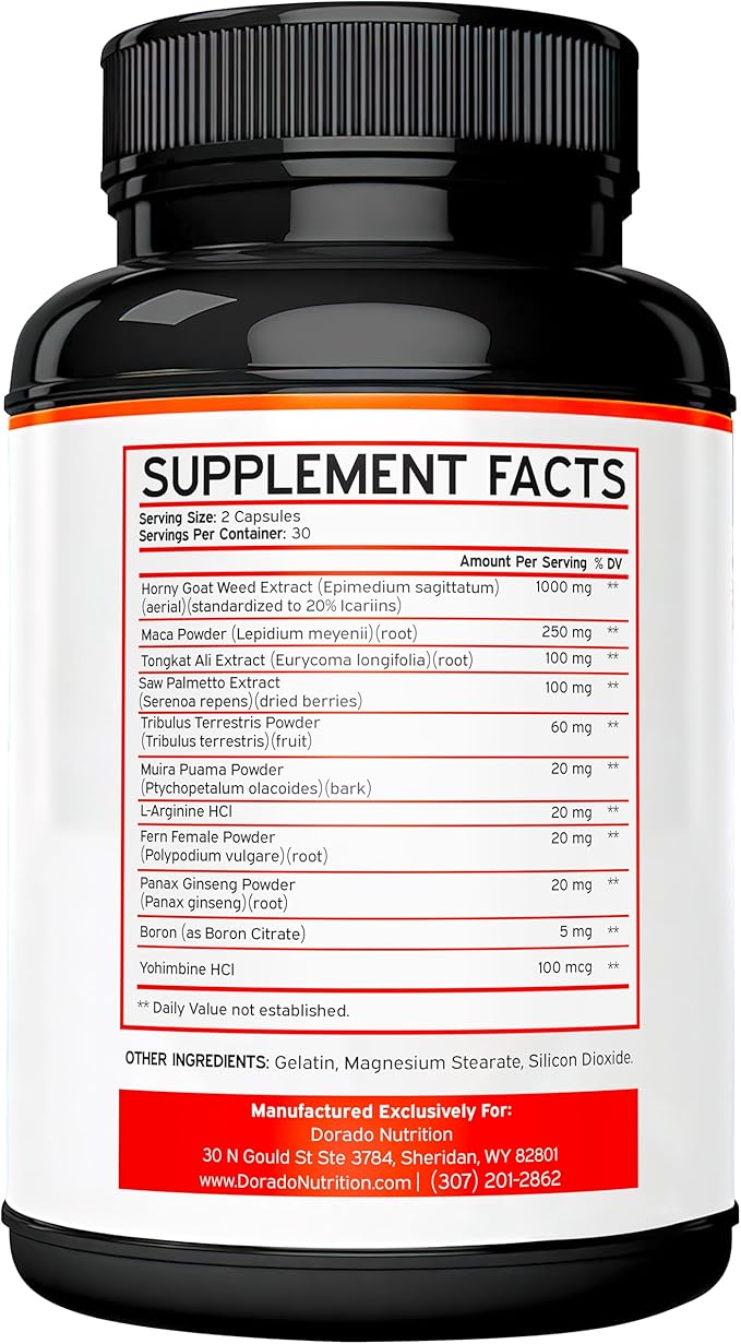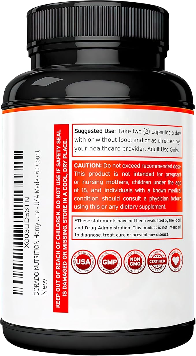 - Manufactured in the USA from Globally Sourced Ingredients - Dorado Nutrition is proudly a 100% American owned company creating jobs & better futures for all our employees & stakeholders. All of our supplements are manufactured in the USA! No gluten, no wheat, no dairy, no sugar, no soy, and no yeast. Our horny goat weed capsules are GMP compliant to ensure premium quality. Our supplements are always free from unnecessary additives or preservatives and are third-party independently tested.