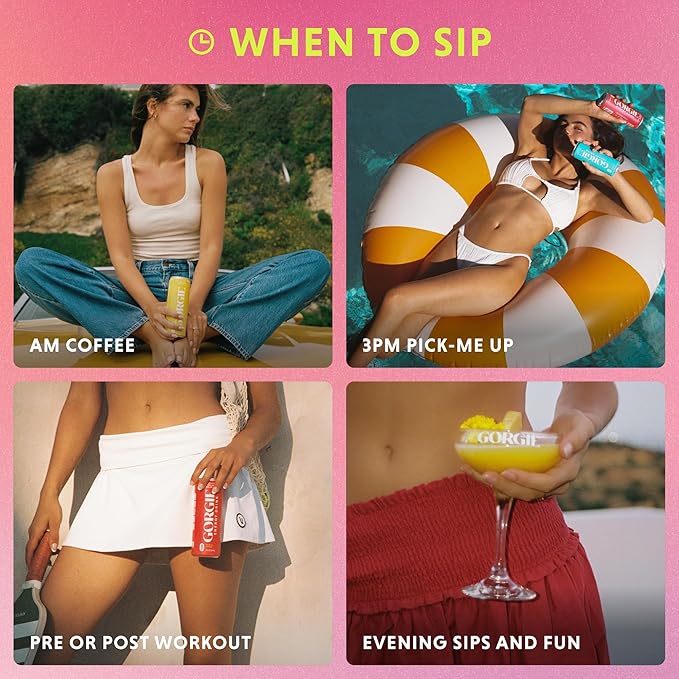 - MIX IT UP: Our bevs have a playful side too! GORGIE's light and natural flavors make them a great mixer for cocktails and mocktails, providing an energizing twist to your favorite drinks.