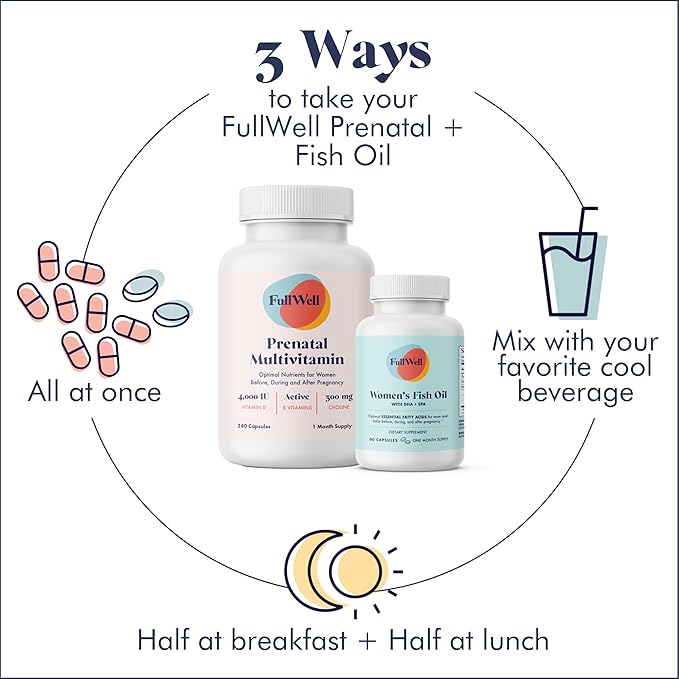 - BIOAVAILABLE REGISTERED DIETITIAN FORMULATED: Our expertly formulated Fish Oil is designed to support brain development, heart health, and mood. It has essential Omenga-3 fatty acids for mom and baby. Our prenatal multivitamin was created to fully cover your vitamin & mineral needs. When both supplements are taken together, they are formulated to ideally nourish before, during, & after pregnancy with consistent doses of bioavailable nutrients. Combined, all of your nutritional bases are covered!