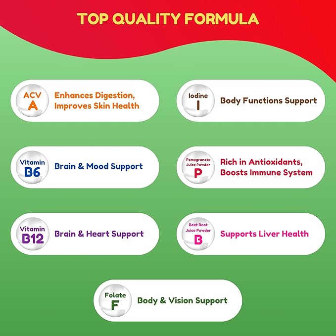- Special Ingredients : Apple Cider Vinegar 500mg , B-6, B-12, Folate, Pomegranate Juice Powder, Beet Root Juice Powder