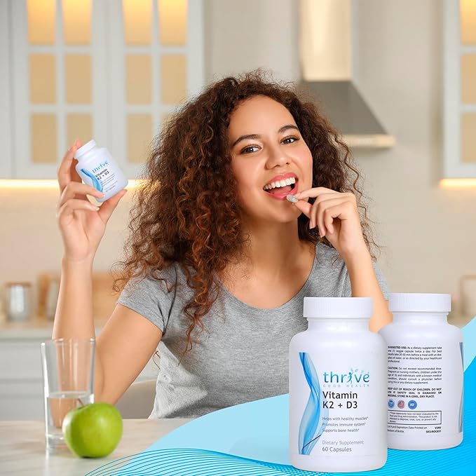 Thrive Good Vitamin K2 D3 - Multivitamin for Women & Men, Daily Dietary Supplement with Vitamin K MK-7, Vitamin D3, Calcium & Black Pepper Fruit Extract - Formulated & Made in USA - 60 Veggie Capsules