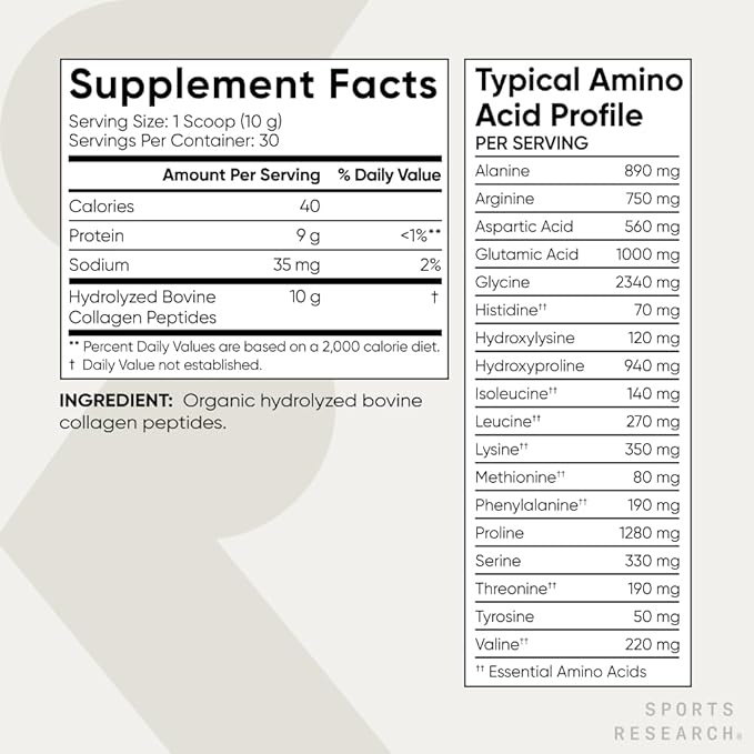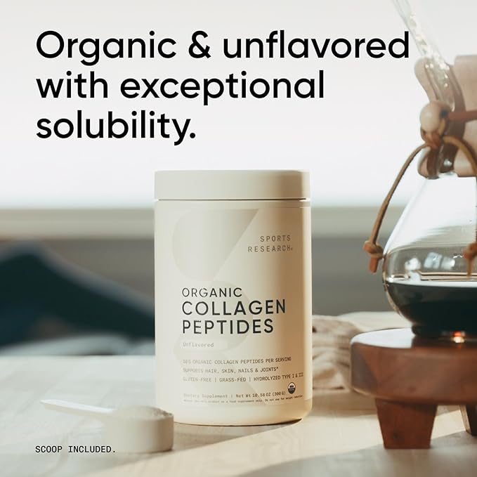 - THE WORLD'S FIRST ORGANIC COLLAGEN PEPTIDES: For years, Collagen Peptides could not be classified as organic because of how it's processed. But we at Sports Research have cracked the code, thanks to a new gelatin-free bio-extraction and purification process, resulting in the first 'pure' Organic Collagen Peptides.