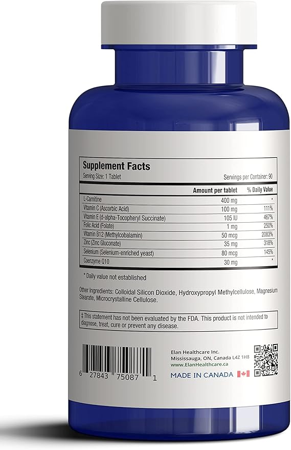 Medfertil for Men Natural Dietary Supplement for Men with Carnitine, Co-Q10, Selenium, Zinc, Vitamin C, E, B12, B9 (30 Tablets)