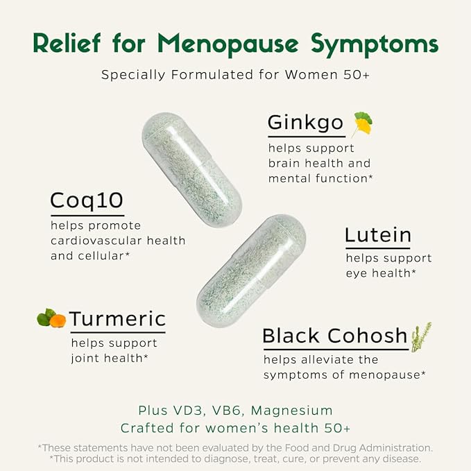 Multivitamin for Women 50 Plus, PMS Relief, Skin, Hair & Nails, Supports Joint & Bone, Heart Health, Eye Health, Turmeric, Coq10, Ginkgo, Lutein, Black Cohosh, Vitamins B6, B12, D3, K2 (60Ct)