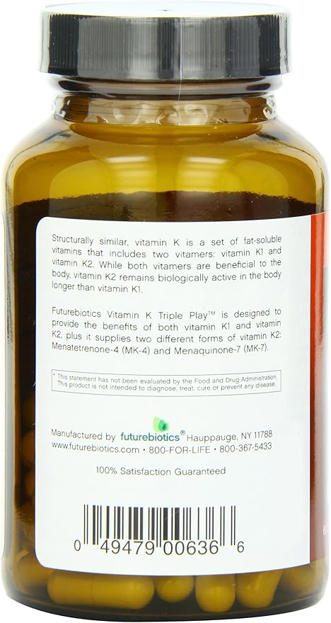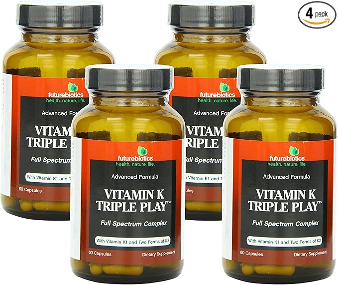 Futurebiotics Capsules, Vitamin K Triple Play, 60 Count (Pack of 4)