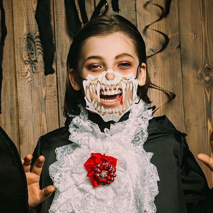 - Exquisite Design: Each cosplay costume half face teeth skull mask is meticulously crafted with attention to detail; The intricate designs and carvings showcase the high quality and exquisite craftsmanship, to be the center of attention at any party or event.