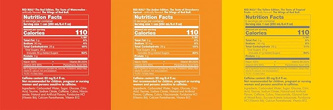 Red Bull Energy Drink Variety Pack, Red, Yellow & Amber, with 80mg Caffeine plus Taurine & B Vitamins, 8.4 Fl Oz, Pack of 24 Cans