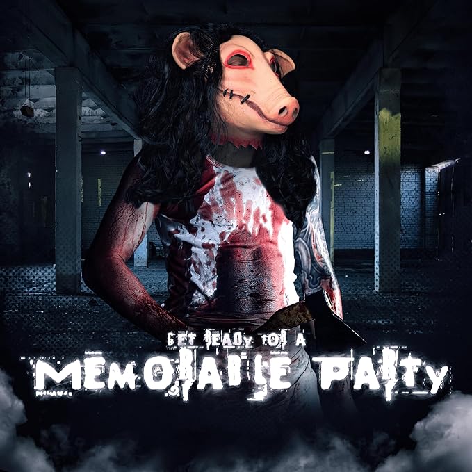 - 🧙♀️Introducing our Scary Pig Mask, designed to elevate your Halloween experience to spine-chilling heights! Featuring a realistic jigsaw-faced design, this mask is perfect for men and adults seeking the ultimate creepy costume. Crafted with high-quality latex and silicone, it brings the horror of Massacre to life. Get ready to terrify with the scariest show in town! From haunted houses to horror movie marathons, this mask is a must-have for horror enthusiasts. Embrace the sinister allure.