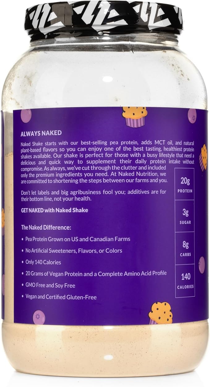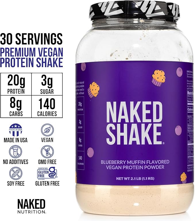 - BLUEBERRY MUFFIN PROTEIN SHAKES: Use Naked Shake to supplement your protein intake without compromising on quality. Just mix our blueberry protein powder with water and enjoy a tasty protein shake while you’re on the go.