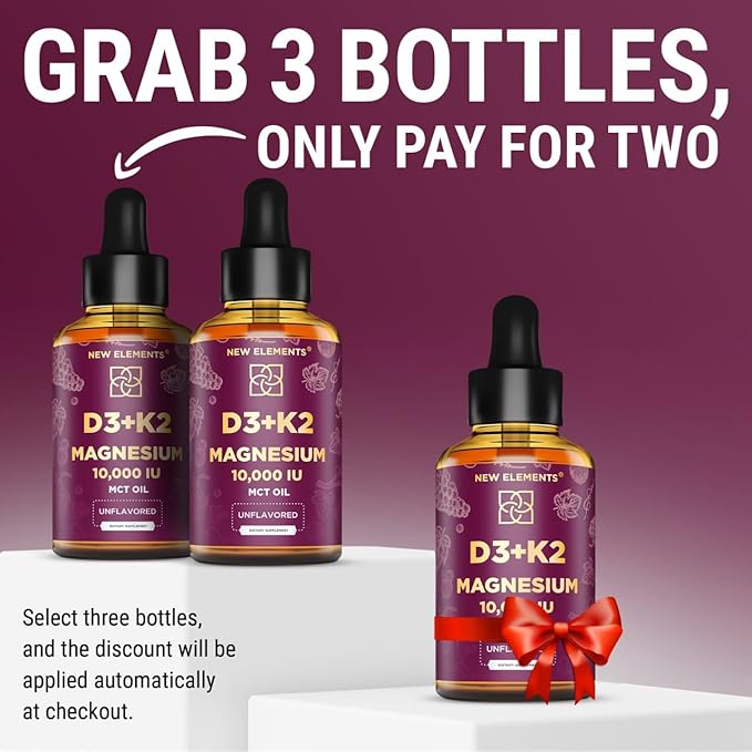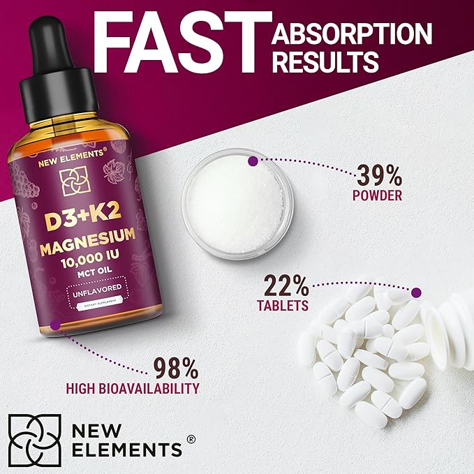 Liquid Vitamin D3 K2 10000IU with Magnesium Glycinate 5mg | VIT D3 K2 Drops for Adults | Mk7 Vitamin K2 100mcg | Vitamin D3 + K2 Supplement for Men & Women | Gluten Free | Non-GMO