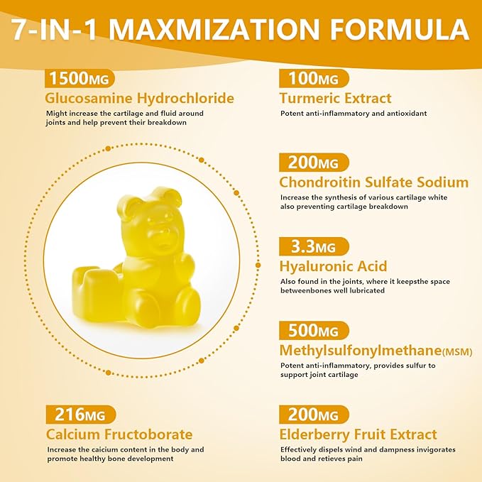- DELICIOUS AND EASY TO TAKE - Swallowing pills is a chore, and the delicious glucosamine chondroitin gummies are undoubtedly an excellent substitute, based on pectin, with a pleasant mango flavor, pleasant taste, easy to chew, and non-stick. These cuddly bears are tasty and nutritious and can help you stay active and supplement a healthy lifestyle!