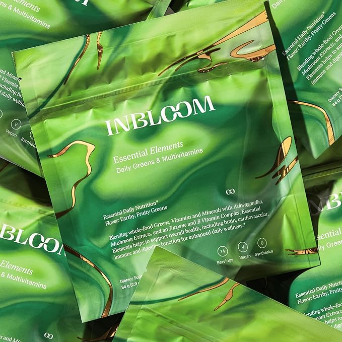 INBLOOM Daily Greens & Multivitamins Powder – Essential Elements for Overall Health, Heart, Immune & Digestive Support with Ashwagandha & B Vitamins, All-Natural, 14 Servings