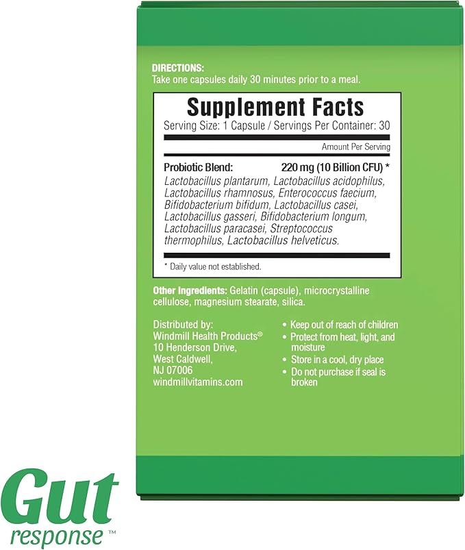 - SUPPORTS HEALTHY IMMUNE FUNCTION. Gut Response Daily Probiotic supplement is designed to support healthy immune function and response thanks to its 10 billion CFU and 11 different probiotic strains to formulation, to maximize probiotic colonization in your gut.
