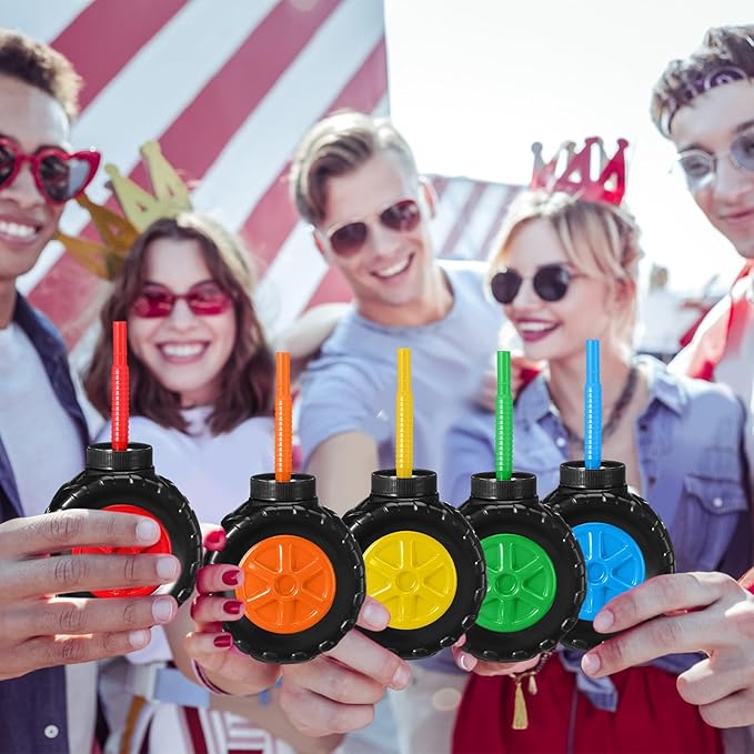 - 12 Sets Plastic Cups: you will receive 12 sets truck wheels drink cups with 12 pcs straws, green, red, yellow, blue, orange, purple colors, each color has 2 sets, which is a nice combination set for kids birthday party favors or gifts and suitable for truck tire theme party; Enough quantity and good combinations to meet your needs and replacements