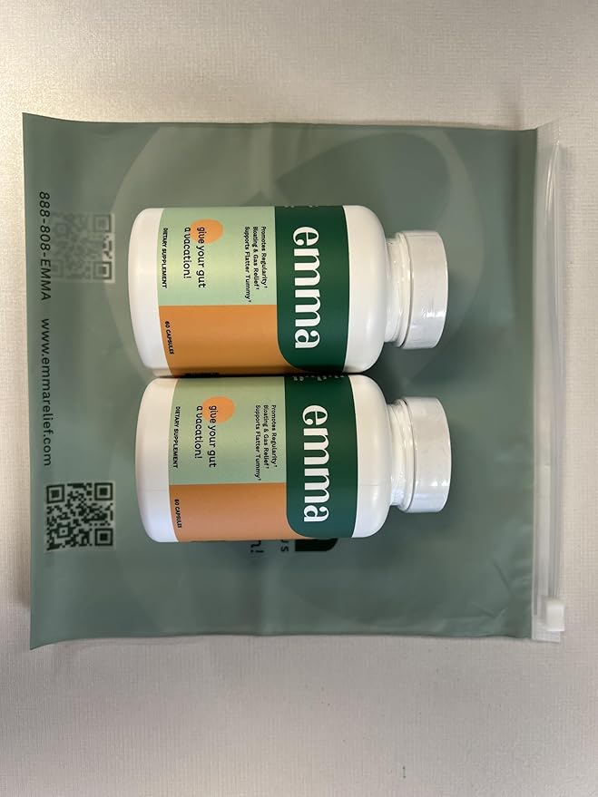 Emma Gut Health - 2 Pack - Gas and Bloating Relief, Constipation, Leaky Gut Repair - Gut Cleanse & Restore Digestion - Regulate Bowel Movement. Probiotics and Laxative Alternative, 120 Capsules