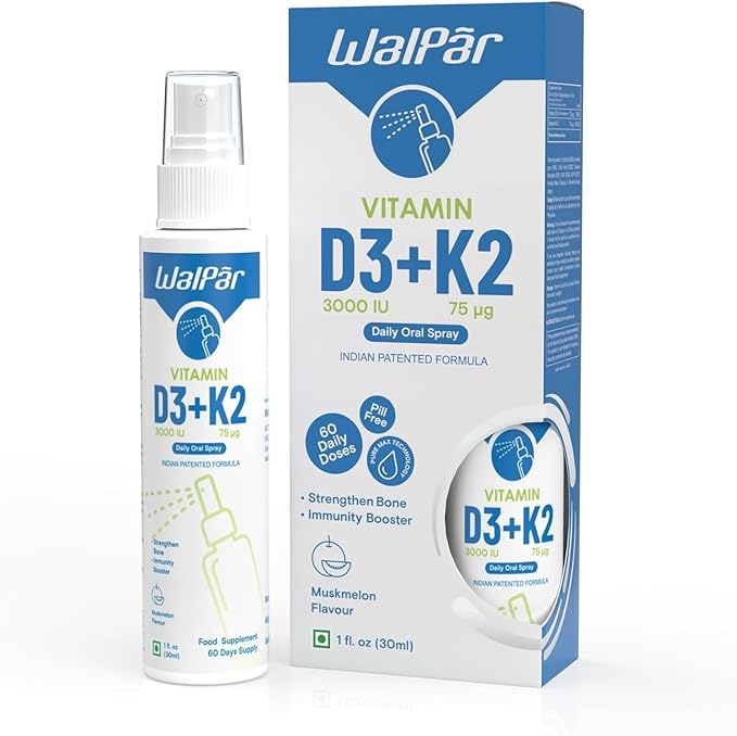 - K2 and Vitamin D3 Spray: Experience the benefits of premium oral supplementation with our Walpar K2 and D3 Vitamin Spray. The powerful fusion of essential vitamins ensures each vitamin D supplements spray delivers 3000 IU, offering a convenient, pill-free alternative to traditional supplements.
