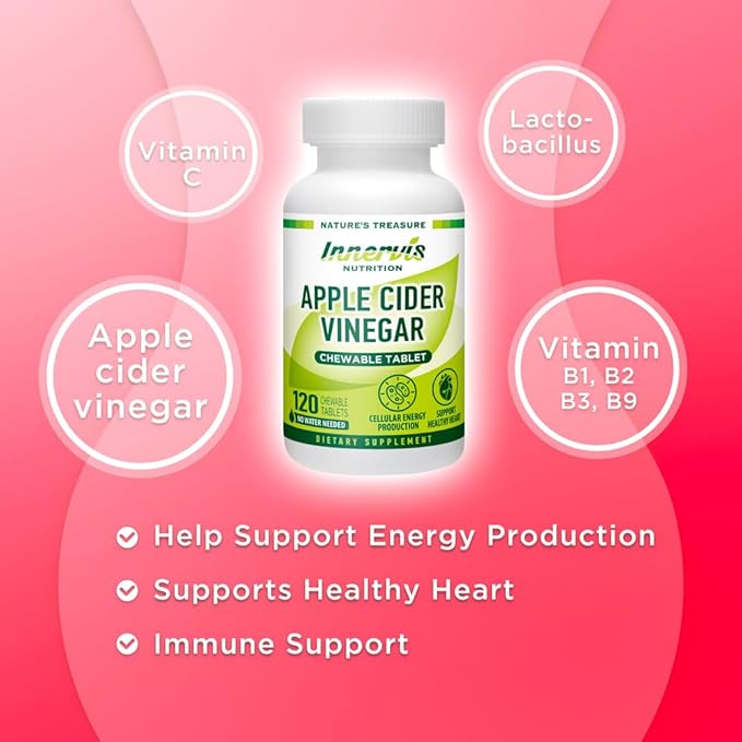 - APPLE CIDER VINEGAR SUPPLEMENT – This dietary supplement is formulated with Apple Cider Vinegar, which is known to be good for heart health along with Vitamins that promote energy production in the body and Probiotics that support digestion. Made to support your digestive health, this daily health supplement comes in easy to chew tablets. This uses only top quality ingredients and contains NO fillers, non-GMO, and no artificial colors or flavors added.