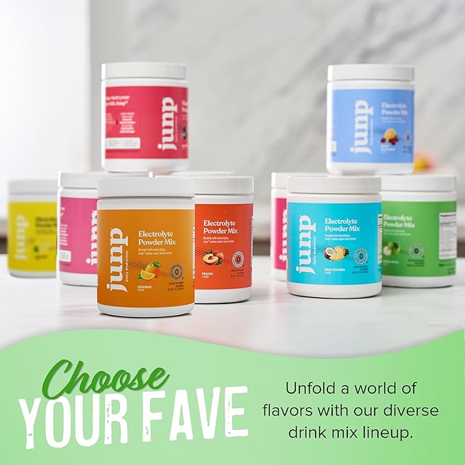 - JUNP: MAKE WATER WORK HARDER - Junp powder electrolyte mix boosts water with natural salty electrolytes and refreshing fruit-infused flavor to keep you hydrated and energized all day, replenishing the essential vitamins and minerals your body loses through sweat.