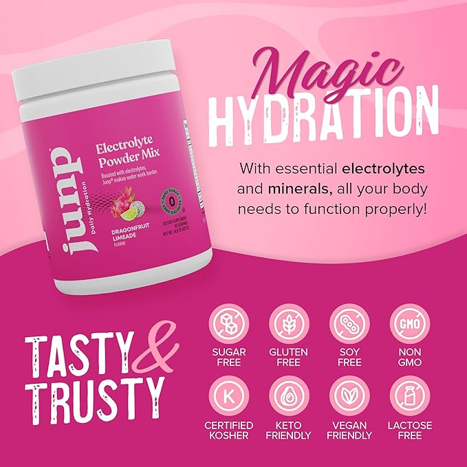 - SUGAR FREE NEVER TASTED THIS GOOD - Junp makes your water work better by infusing it with a balance of essential electrolytes including Sodium, Potassium, and Magnesium. Fuel athletic performance, enhance recovery, reduce cramping and soreness, and return to health faster with this electrolytes powder sugar free drink mix.