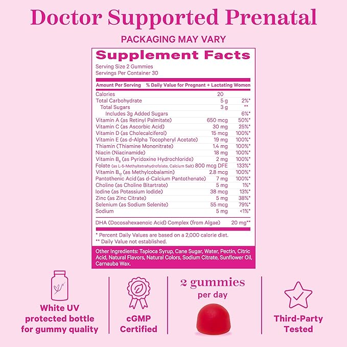 - OBGYNs recommend prenatal supplementation while trying to conceive, as you need to prepare your body for pregnancy. Our prenatal gummies feature vitamins to support your fertility and prenatal health to get you and your baby off to a great start -- supporting immune health, cognition, and mood health.