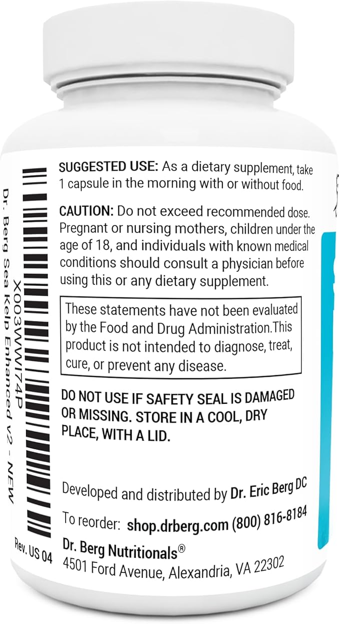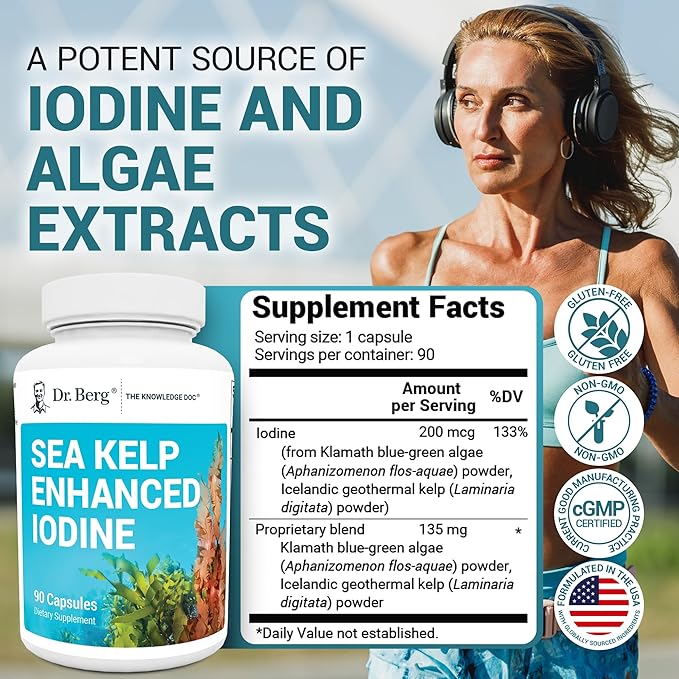 Dr. Berg Sea Kelp Enhanced Iodine - 200 mcg of Premium Iodine - Seaweed Blend Includes Klamath Blue-Green Algae & Sea Kelp - 90 Capsules