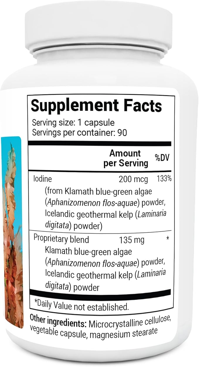 - ๐๐๐ง ๐ ๐๐๐๐๐ฌ ๐๐ข๐ข๐ฆ๐ง ๐ข๐ ๐๐ข๐๐๐ก๐ - This powerful formula combines 135 mg of our unique proprietary blend of algae and sea kelp with 200 mcg of premium-quality iodine. What's unique about our Sea Kelp Iodine supplement is it comes from an underwater forest in the pristine waters of Iceland.
