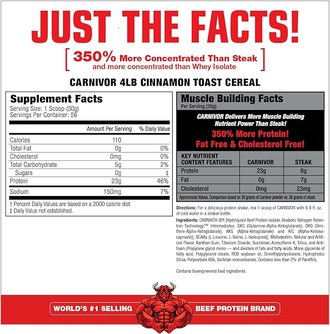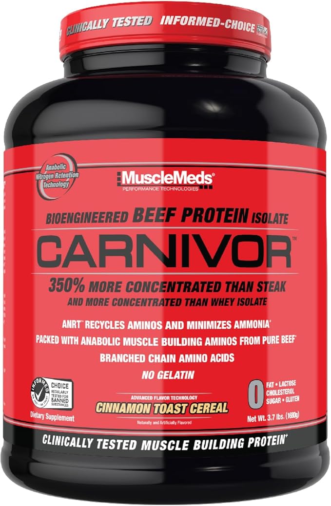 MuscleMeds Carnivor Beef Protein Isolate, 0 Lactose, 0 Sugar, 0 Fat, 0 Cholesterol, Cinnamon Toast Cereal, 4 Lb, 56 Servings
