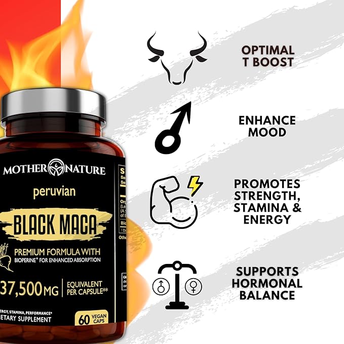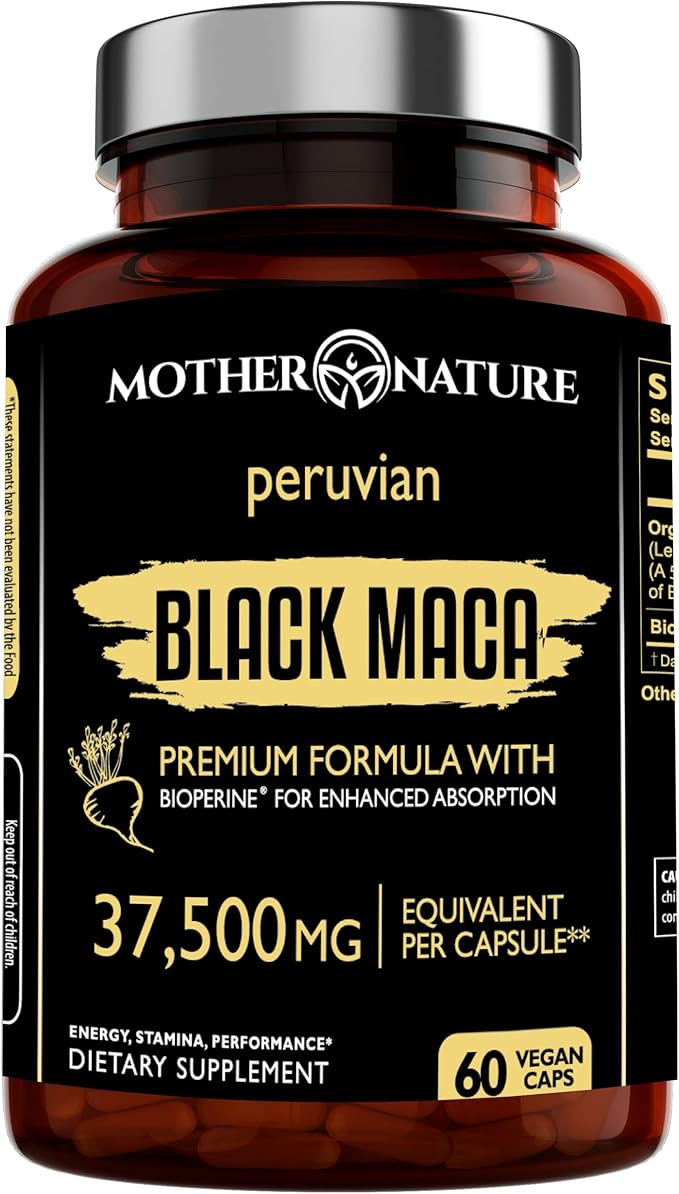 - Brain and Mood Support: The Mother Nature the black maca root pills not only can help improve physical performance and strength but also brain function. It is a great promoter of optimal cognitive functions, as it can help boost mental clarity and focus, improve mood and memory, and contribute to hormonal balance.