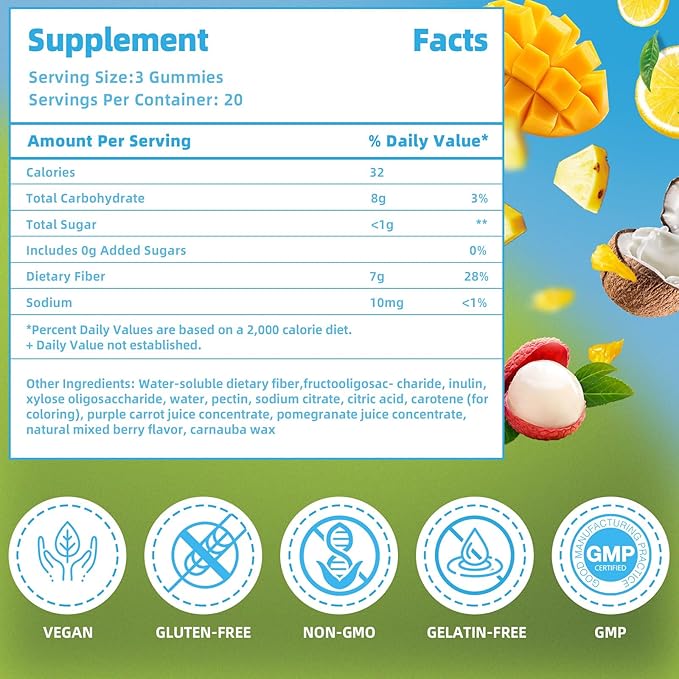- Clean and Pure: Our fiber gummies are made with non-GMO ingredients and are gluten-free. We believe that everyone should have access to safe and healthy supplements, and we are providing products that meet the highest standards of quality and purity