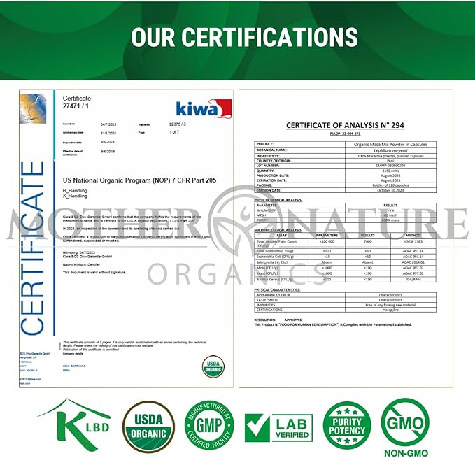 - USDA ORGANIC MACA SOURCED FROM PERU: Our Maca Root Capsules are made from premium quality USDA organic maca roots sourced directly from the fertile regions of Peru, ensuring purity and potency. Manufactured in GMP-certified facilities, these raw maca capsules preserve the full nutritional profile of maca, supporting easier digestion and absorption – a natural maca root supplement you can trust for daily vitality.