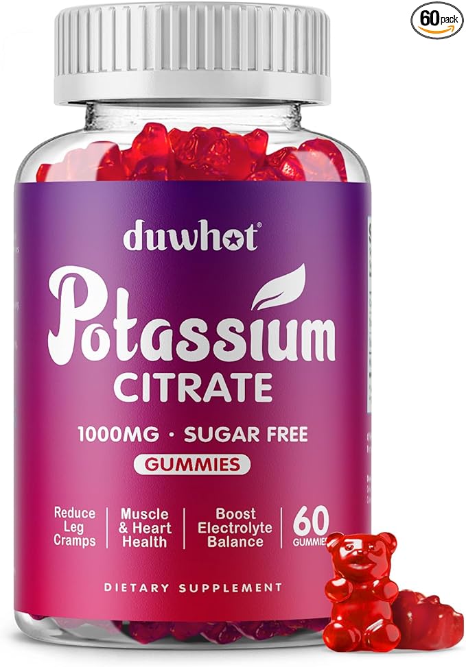 Potassium Citrate 1000mg Gummies, Potassium Supplement for Adults Women & Men, Support Leg Cramps & Muscle Health, 60 Chewables