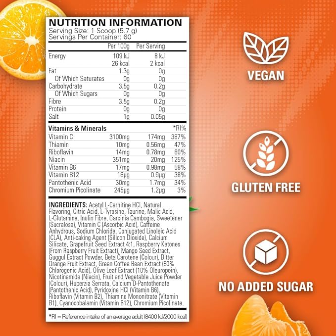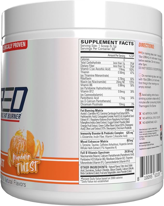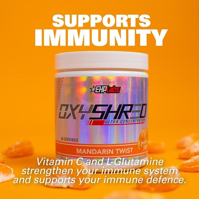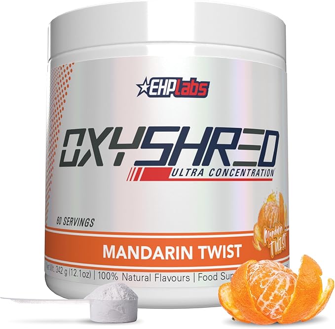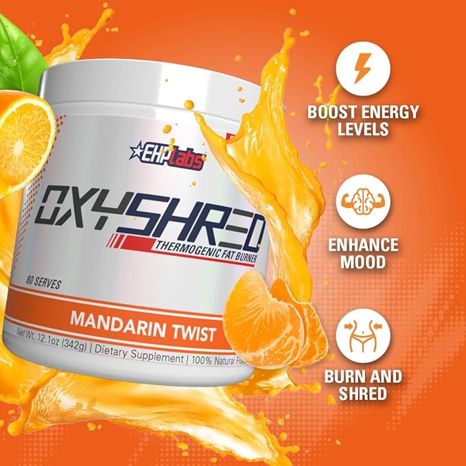 EHP Labs OxyShred Pre Workout Powder - Preworkout Powder with L Glutamine & Acetyl L Carnitine, Energy Boost Drink - Mandarin Twist, 60 Servings