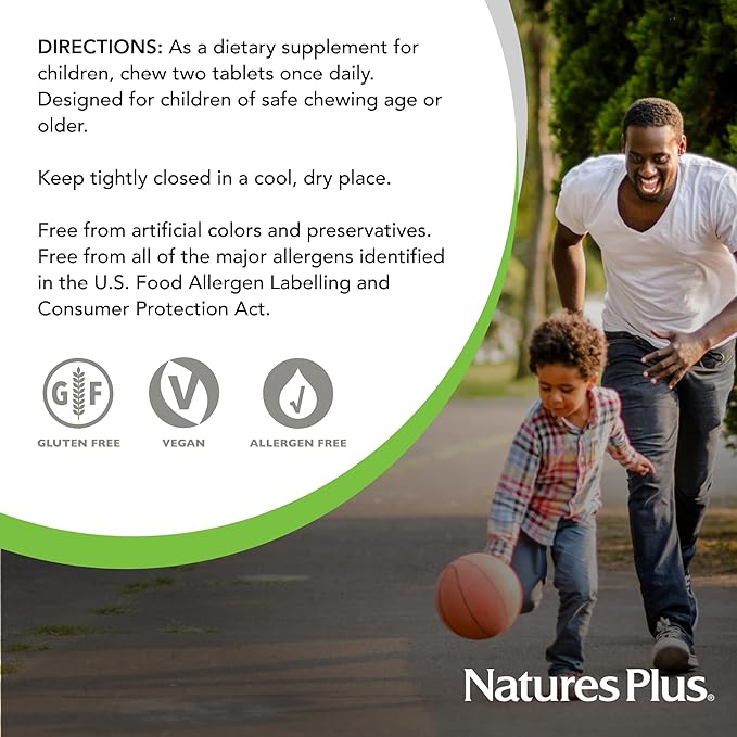 Natures Plus Animal Parade Gold Children's Multivitamin - Assorted Cherry, Orange & Grape Flavors - 60 Chewable Tablets, Pack of 2 - Vegetarian, Gluten Free - 60 Total Servings