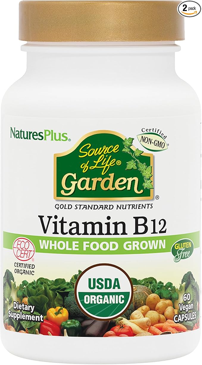 Natures Plus Source of Life Garden Vitamin B12 - Pack of 2, 60 Vegan Capsules - Vegetarian, Gluten Free, Certified Organic - 60 Total Servings
